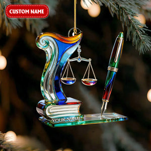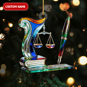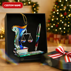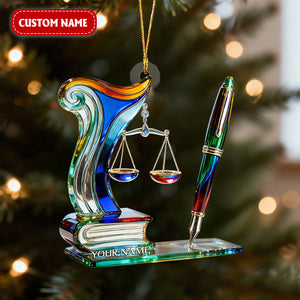 Scales of Justice & Pen Acrylic Ornament, Crystal Law Ornament, Gift for Lawyers, Christmas Tree Ornament