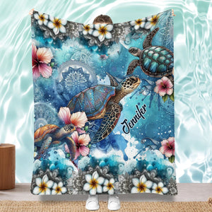 Sea Turtle Flower Blanket, Personalized Turtle Blanket, Personalized Sherpa Blanket