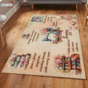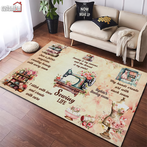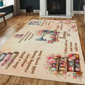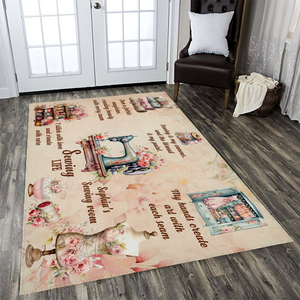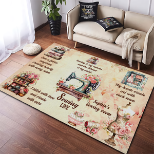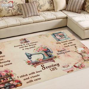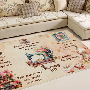 Sewing Life Personalized Area Rug Carpet, Sewing Machine Rug, Craft Room Decor
