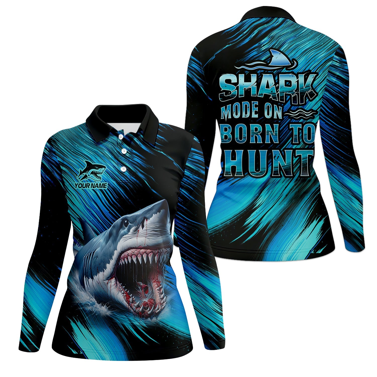 Shark Fishing UPF Shirts, Shark Mode On Born To Hunt, Women Fishing Shirt, SPF Long Sleeve Shirts Womens