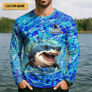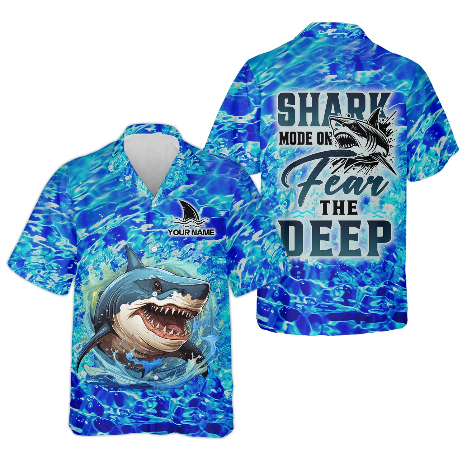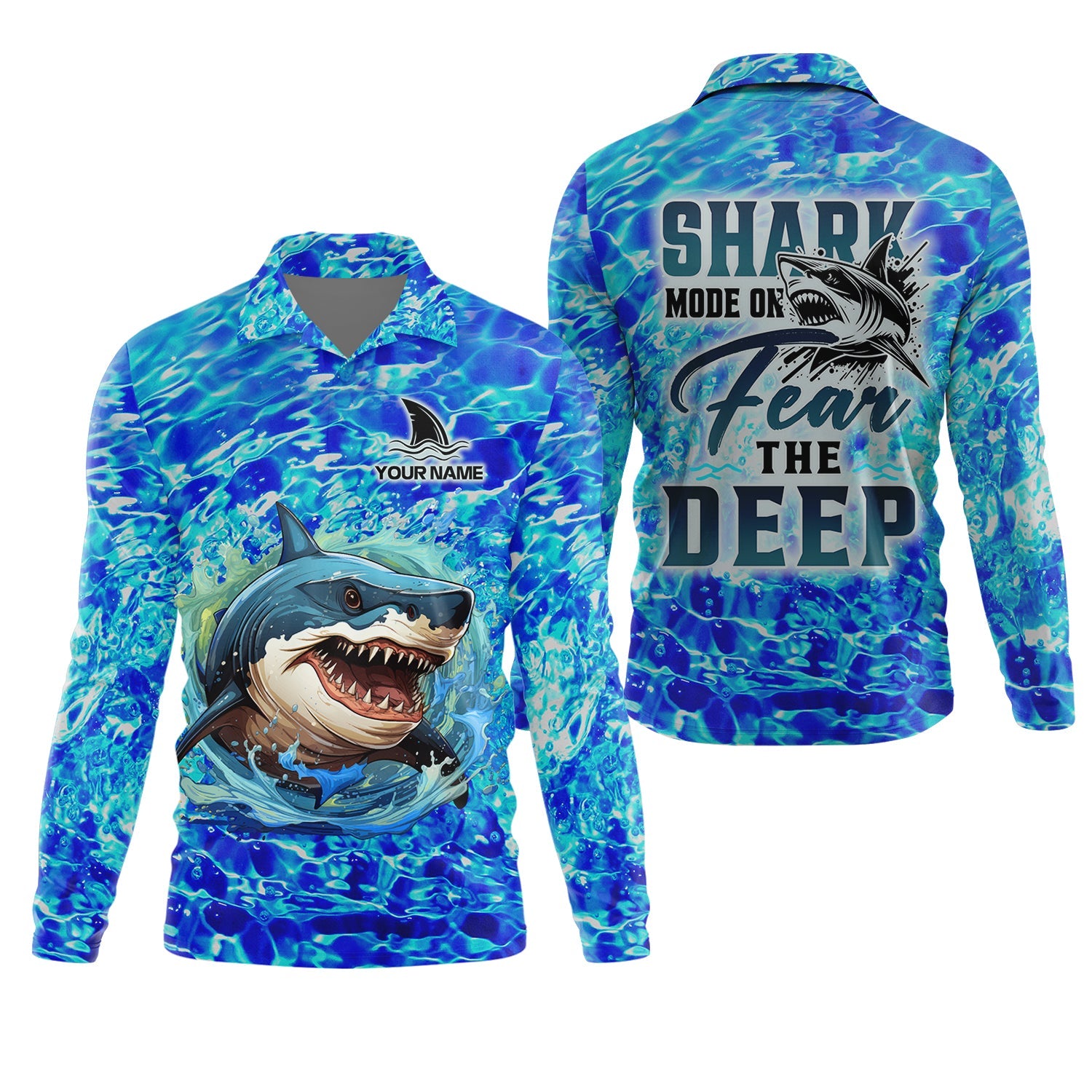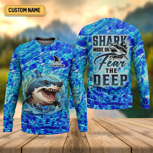 Shark Fishing UPF Shirts, Shark Mode On Fear The Deep, Funny Fishing Shirt, Gift For Fisherman