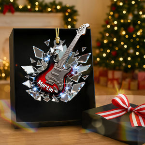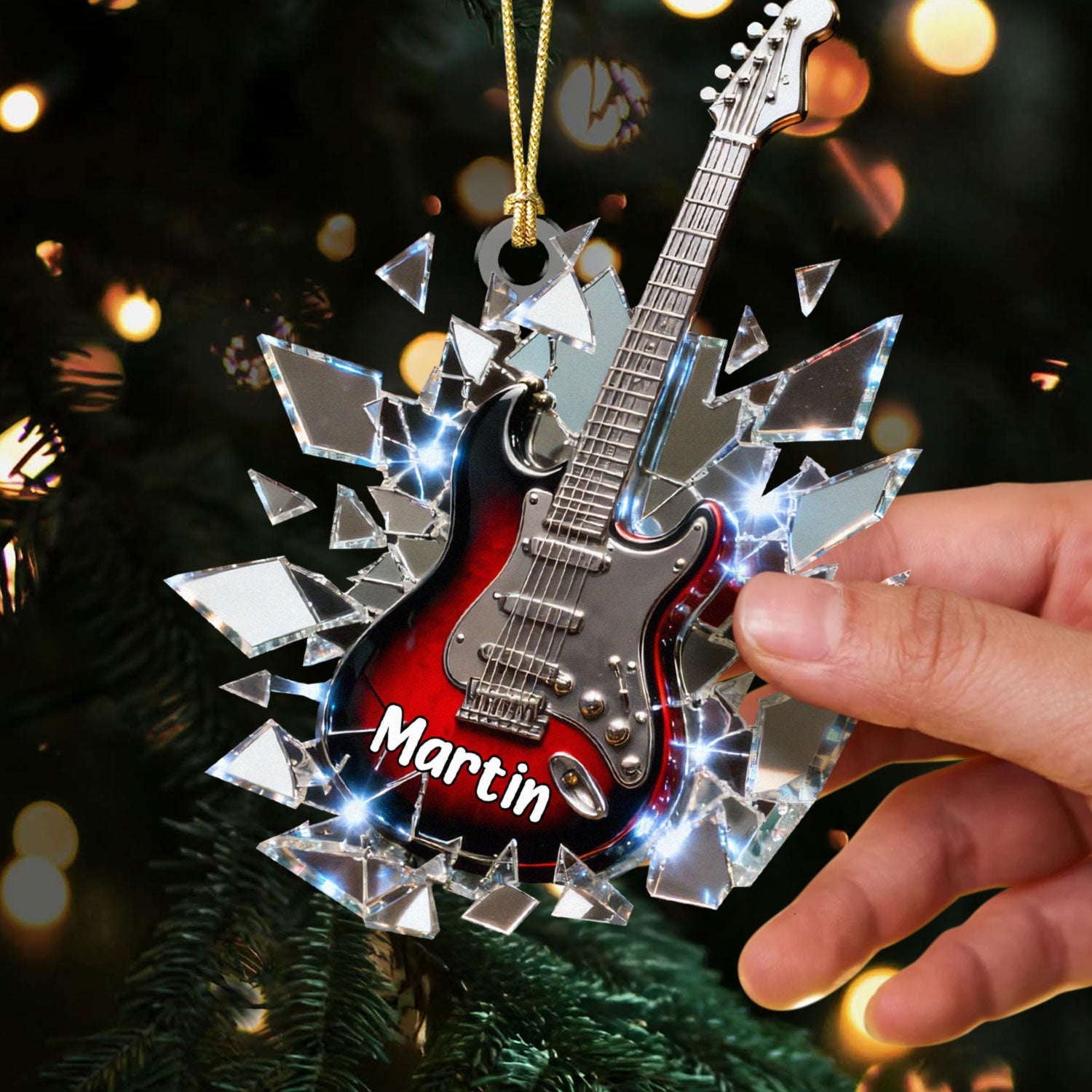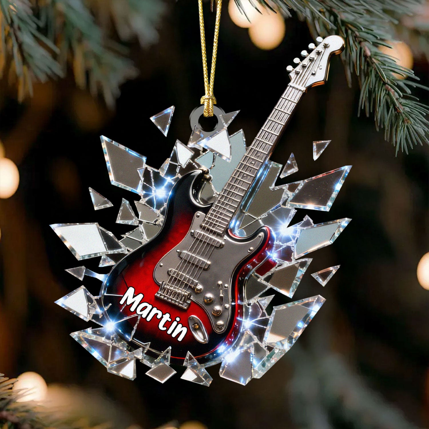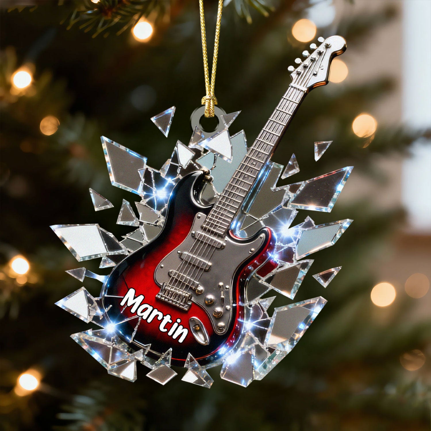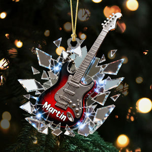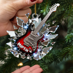 Shattered-Mirror Mini Electric Guitar Custom Name Stained Glass Effect Acrylic Christmas Ornament, Guitarist Gift
