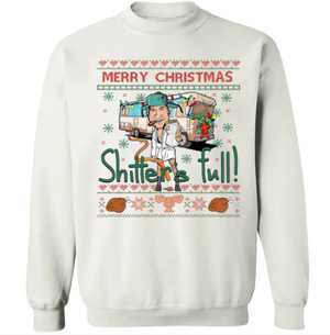 Get into the holiday spirit with a playful twist on festive apparel! Our "Shitter's Full" Christmas sweater are perfect for those who love to celebrate the season with humor. This unique piece makes a fantastic gift for friends, family, or anyone who enjoys a good laugh during the holidays.