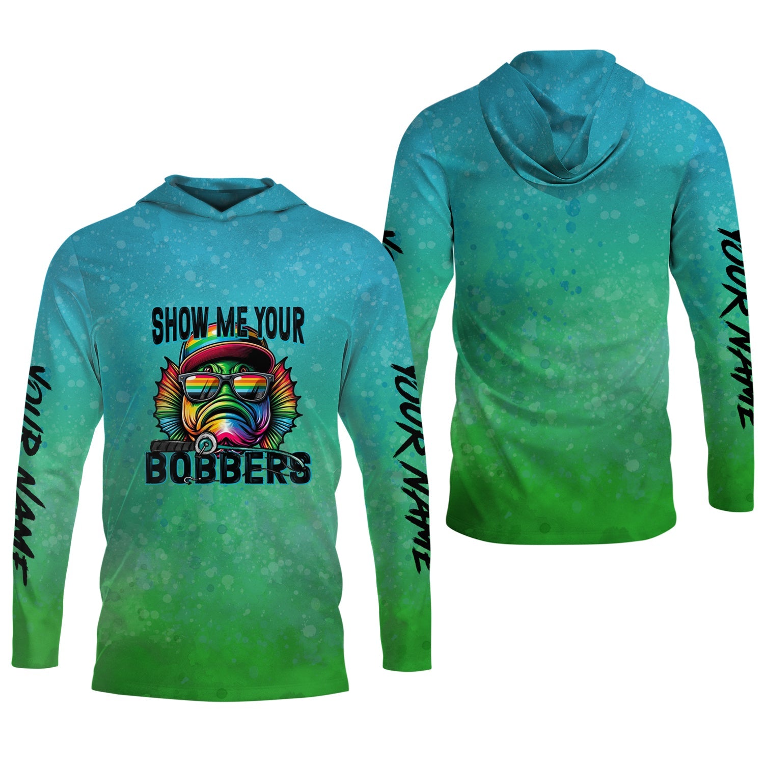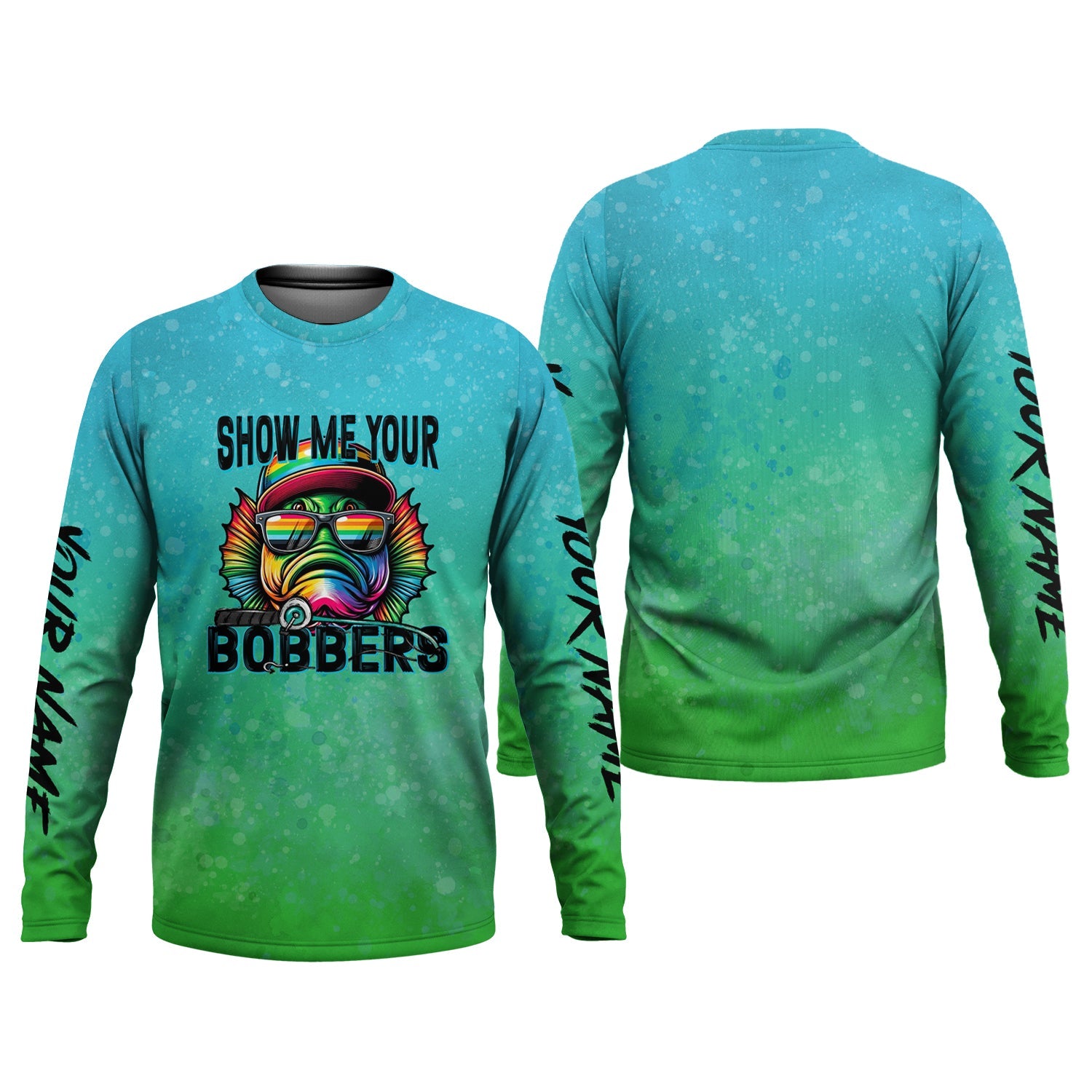 Show Me Your Bobbers Shirt, Green Blue Neon Men Fishing Shirt, Funny Fishing Shirt, SPF Shirt