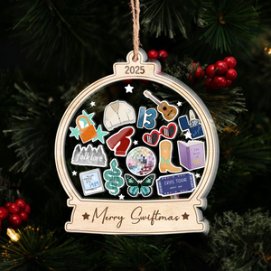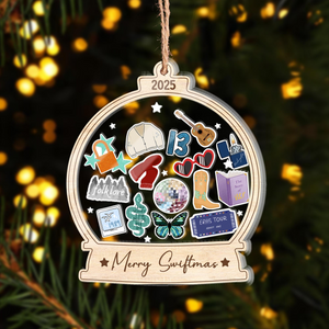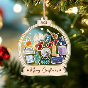 Celebrate the joyous occasion of a new arrival with our Showgirl Era Music Tour Shaker Ornament, Music Holiday Presents For Music Lovers, Album Music Xmas Decor. This charming ornament is a heartfelt keepsake to commemorate a baby's very first holiday season. Crafted from high-quality materials, the ornament features a playful shaker design filled with tiny snowflakes or festive accents that swirl around when gently shaken, adding a magical touch to your Christmas tree.