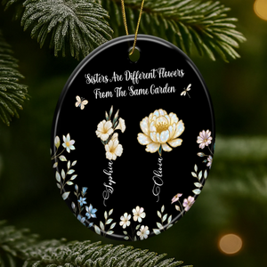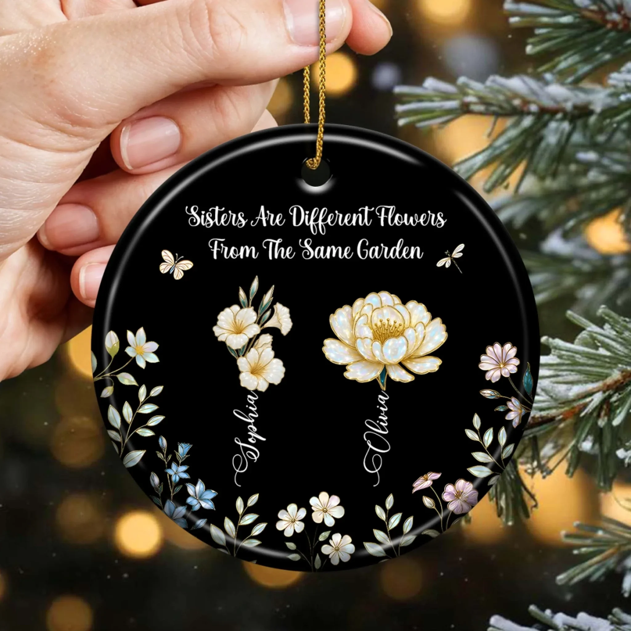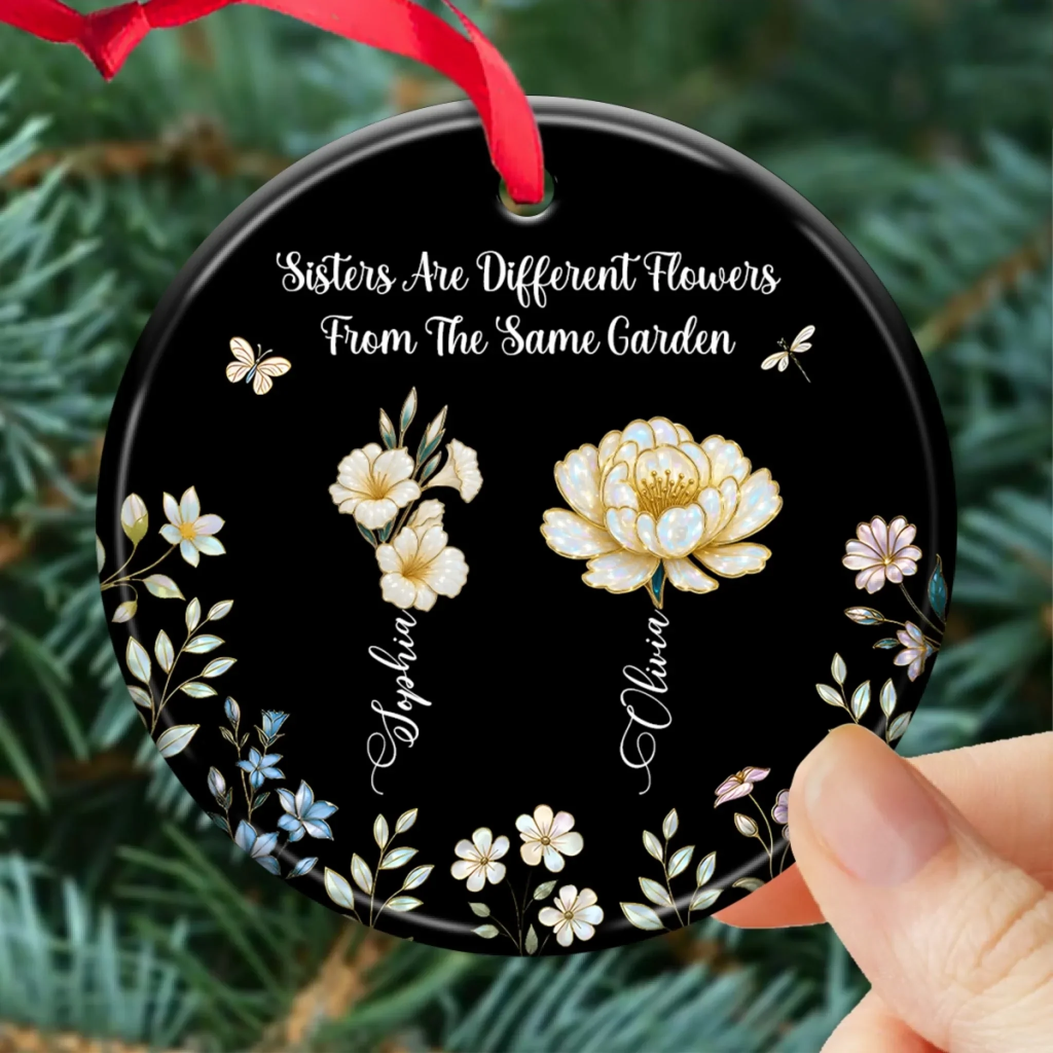 Sister Are Different Flowers From The Same Garden Ceramic Ornament, Birth Flower Xmas Decor Personalized Ornament