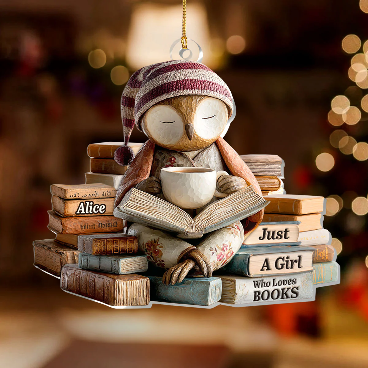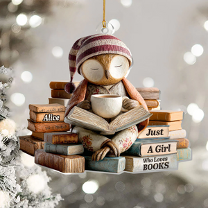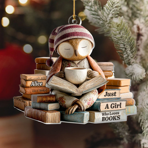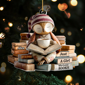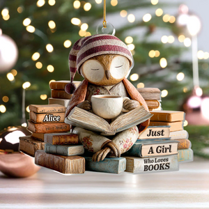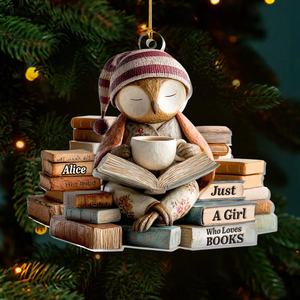 Sleepy Owl Acrylic Ornament, Custom Name Gifts For Readers, Reading Theme Xmas Decor, Christmas Gift For Her