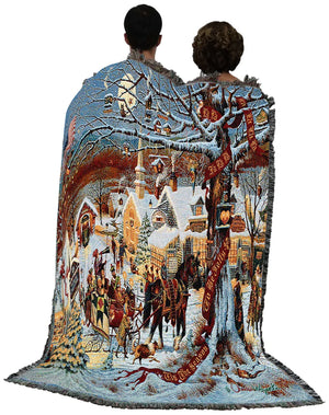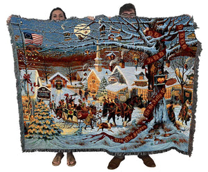 Small Town Christmas Blanket Woven, Christmas Home Decor, Christmas Gifts