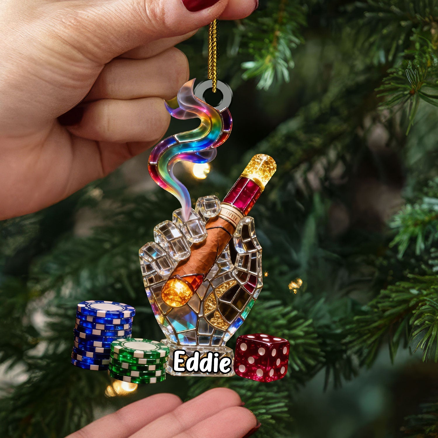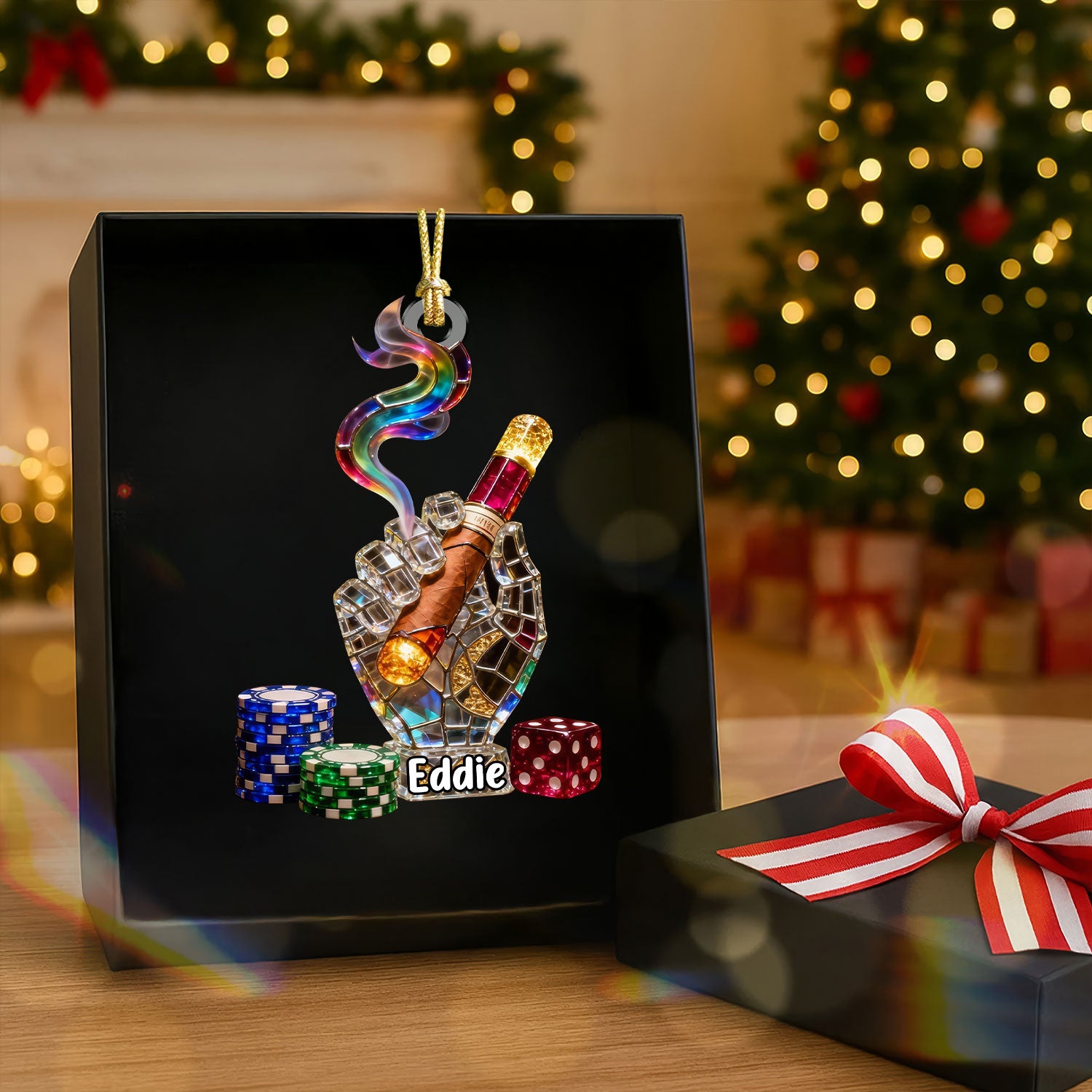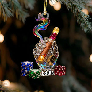 Smoking Casino Acrylic Ornament, Card Player Xmas Home Decor, Casino Lover Christmas Unique Gift