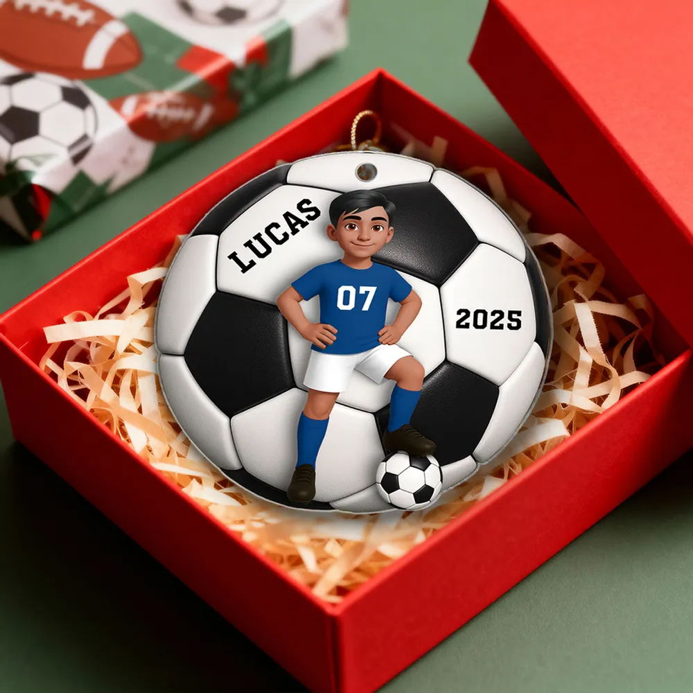 Soccer Custom Acrylic Ornament, Custom Name Gift For Soccer Lover, Soccer Christmas Gift