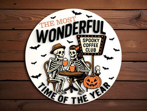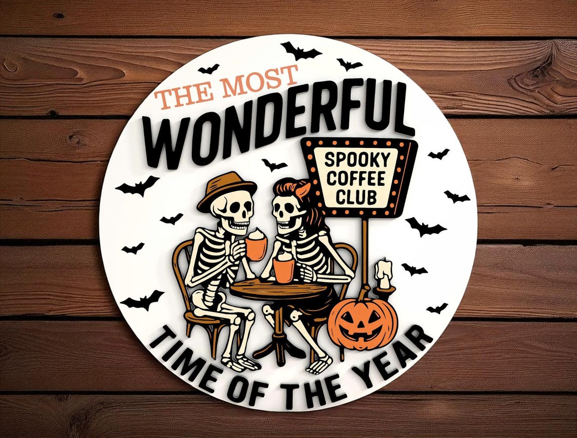 Spooky Coffee Skeleton Pumpkin Wood Signs Outdoor, Halloween Door Hanger, Halloween Door Decor
