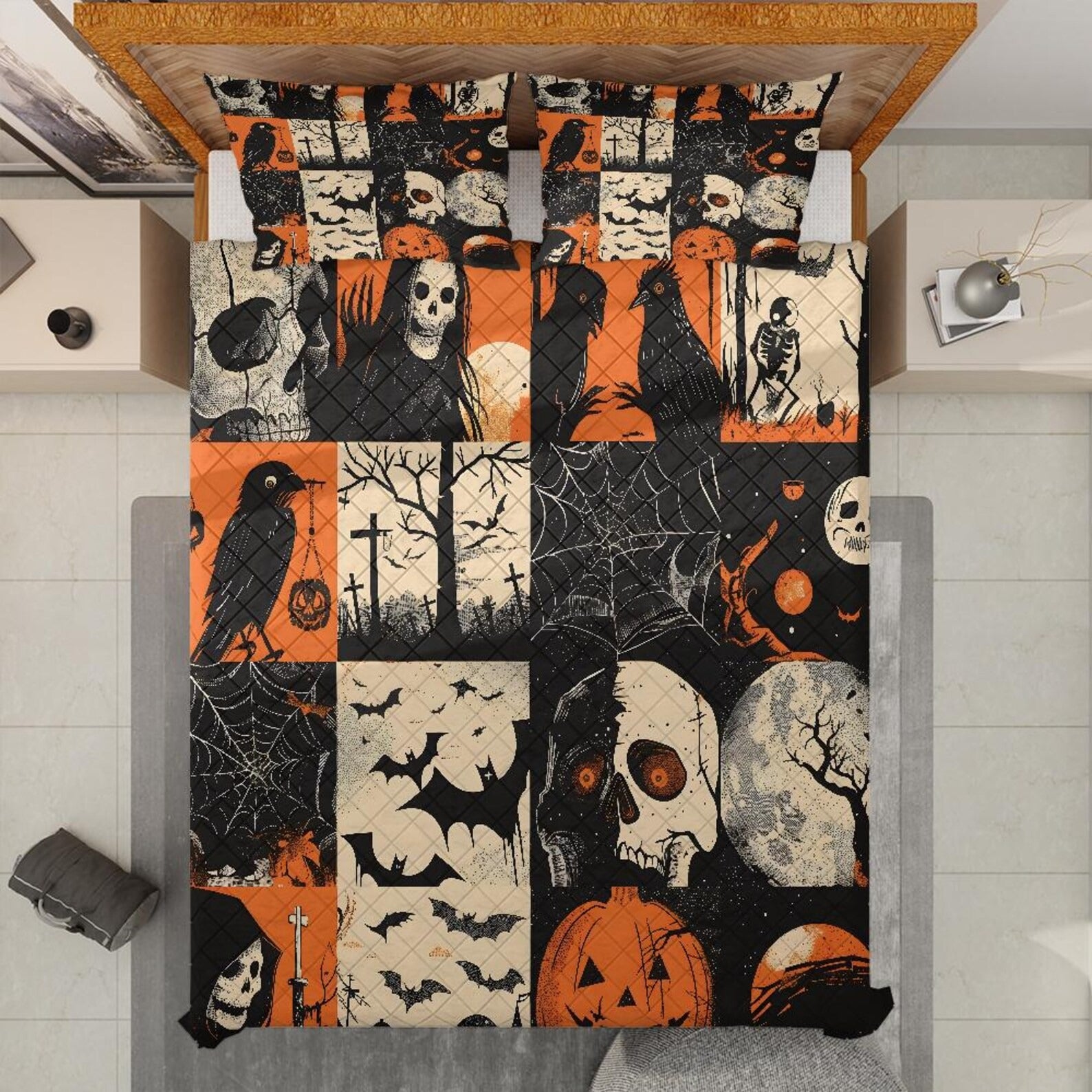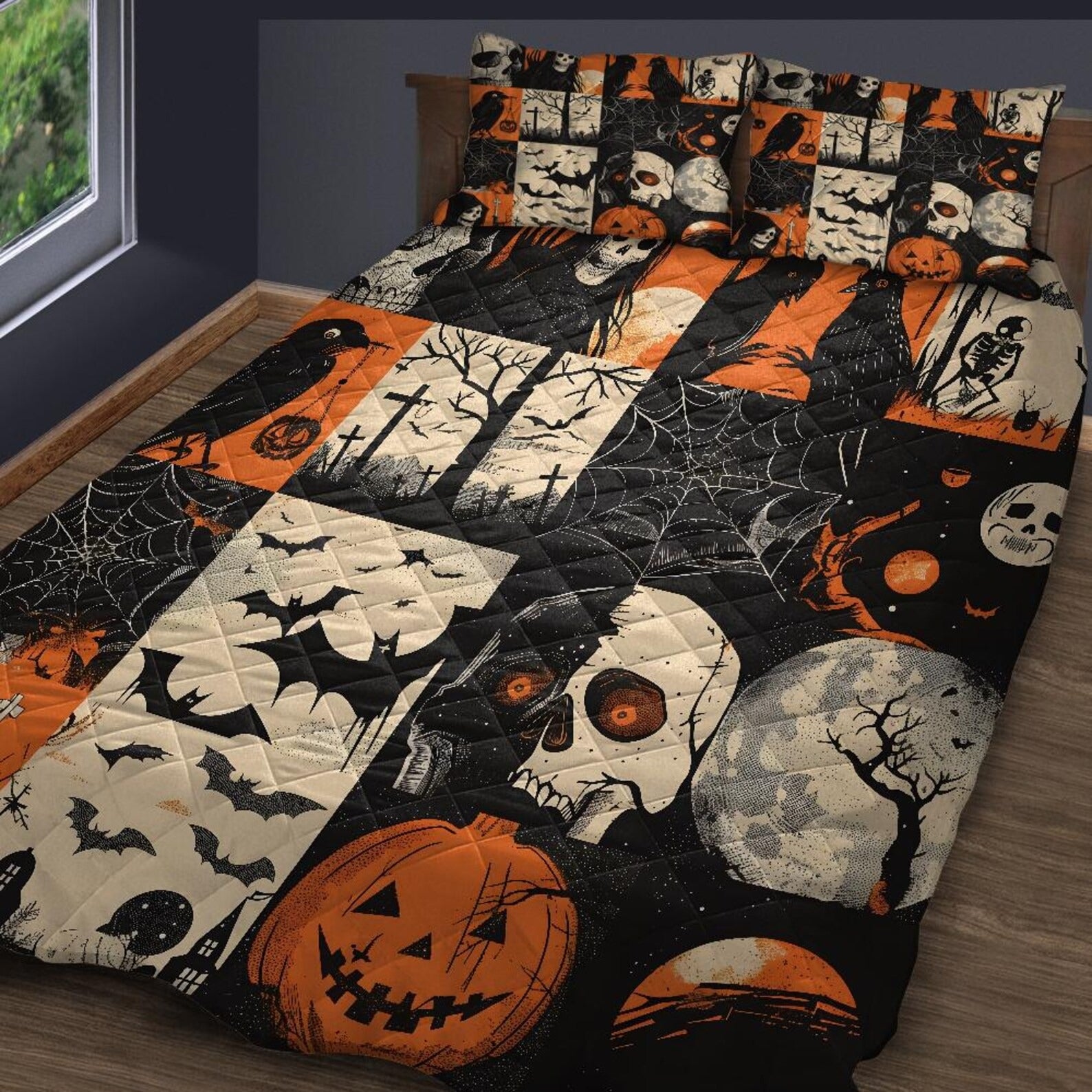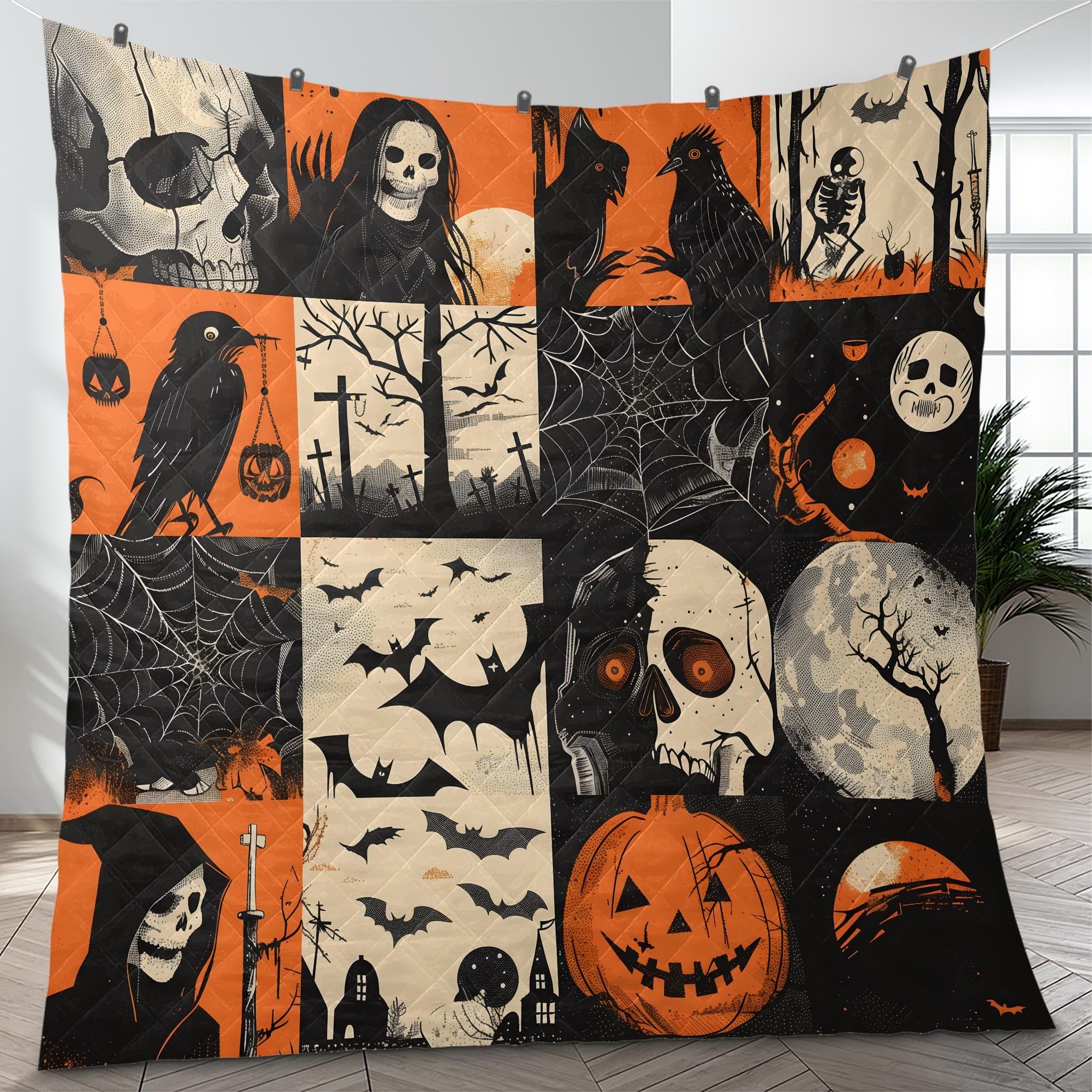 Spooky Ghost Halloween Blanket, Best Bed Blankets, Halloween Quilt Bedding Set