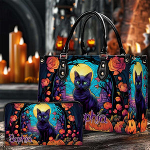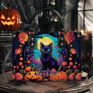 Spooky Pumpkin Vibe Halloween Leather Handbag, Witchy Purse