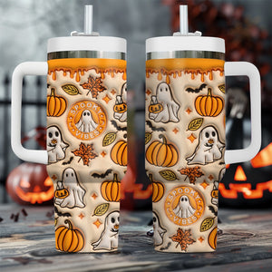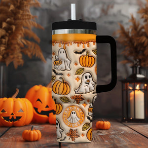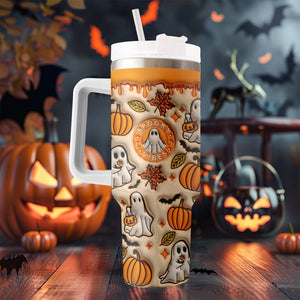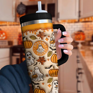 Spooky Pumpkin Vibe Print 3D 40oz Tumbler with Handle, Halloween Gifts