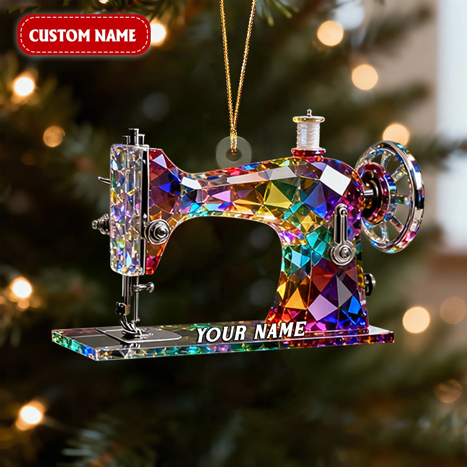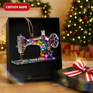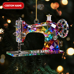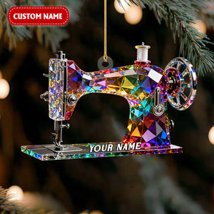 Stained Glass Effect Sewing Machine Custom Name Acrylic Christmas Ornament, Gift For A Tailor, Xmas Decor