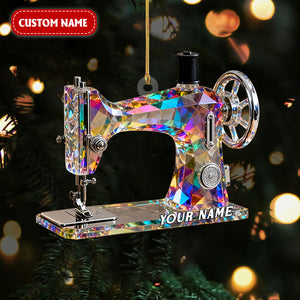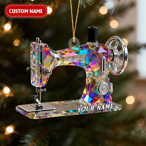 Stained Glass Effect Sewing Machine Custom Name Acrylic Ornament, Gift For A Tailor, Xmas Decor