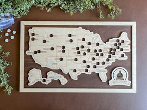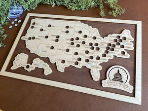 State Capitals Bucket List With Pins, State Capitals Wooden Map Tracker