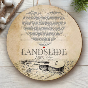 Stevie Nicks Fleetwood Mac Band Landslide Lyrics Song Gallery Wall ArtGift For Music Fan Guitarist Round Wood Sign, Wood Sign For Home