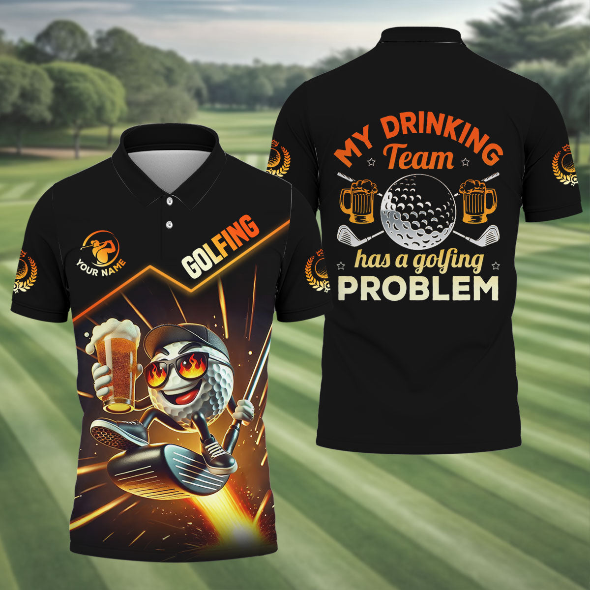 My Drinking Team Has A Golfing Problem Custom Men's Golf Polo Shirt, Golf Presents For Dad