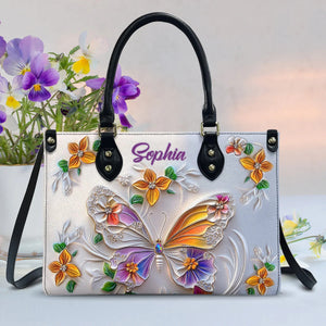 Stunning Butterfly - Personalized Butterfly Leather Handbag - Boho Handbag Gift for Her - Leather Shoulder Bag