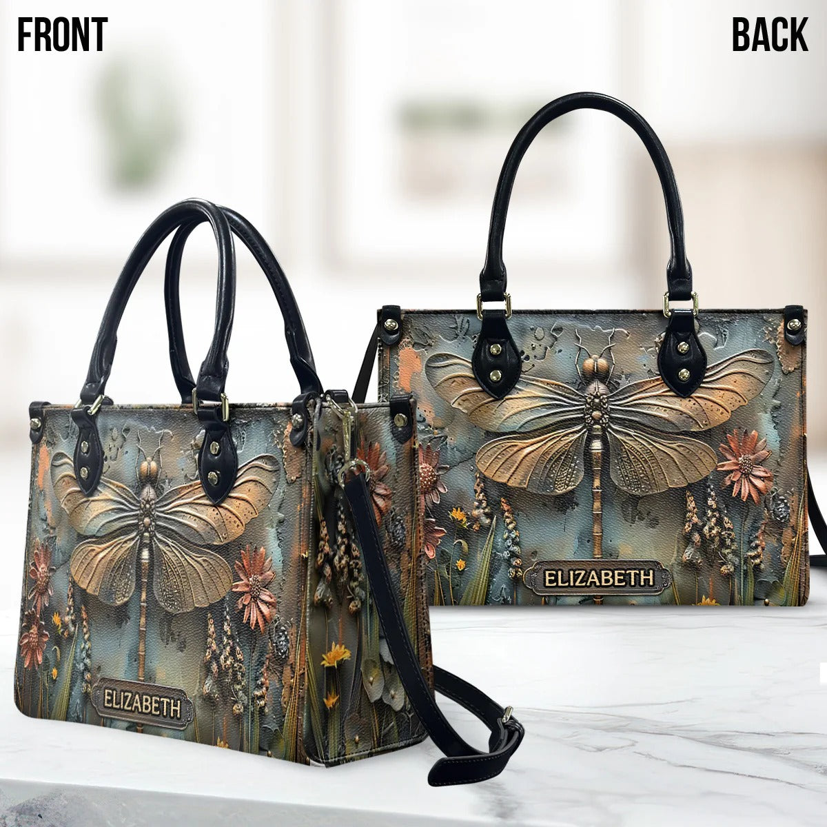 Stunning Dragonfly - Personalized Dragonfly Leather Handbag