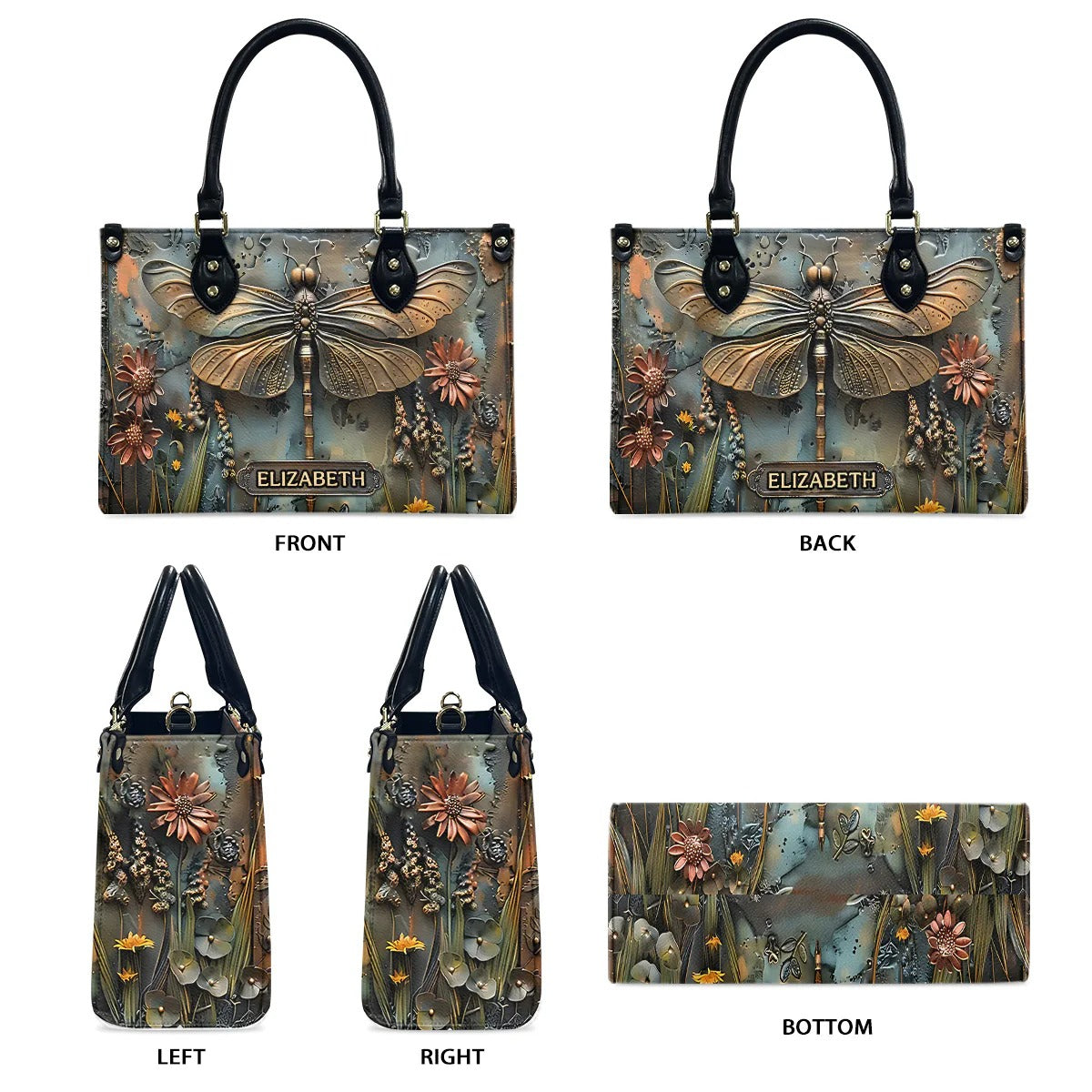 Stunning Dragonfly - Personalized Dragonfly Leather Handbag - Boho Handbag - Leather Shoulder Bag