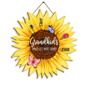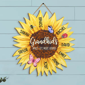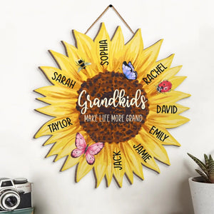 Sunflower Grandkids Make Life More Grand 2 Layered Wood Sign, Mother's Day Gift, Gift For Mom And Grandma