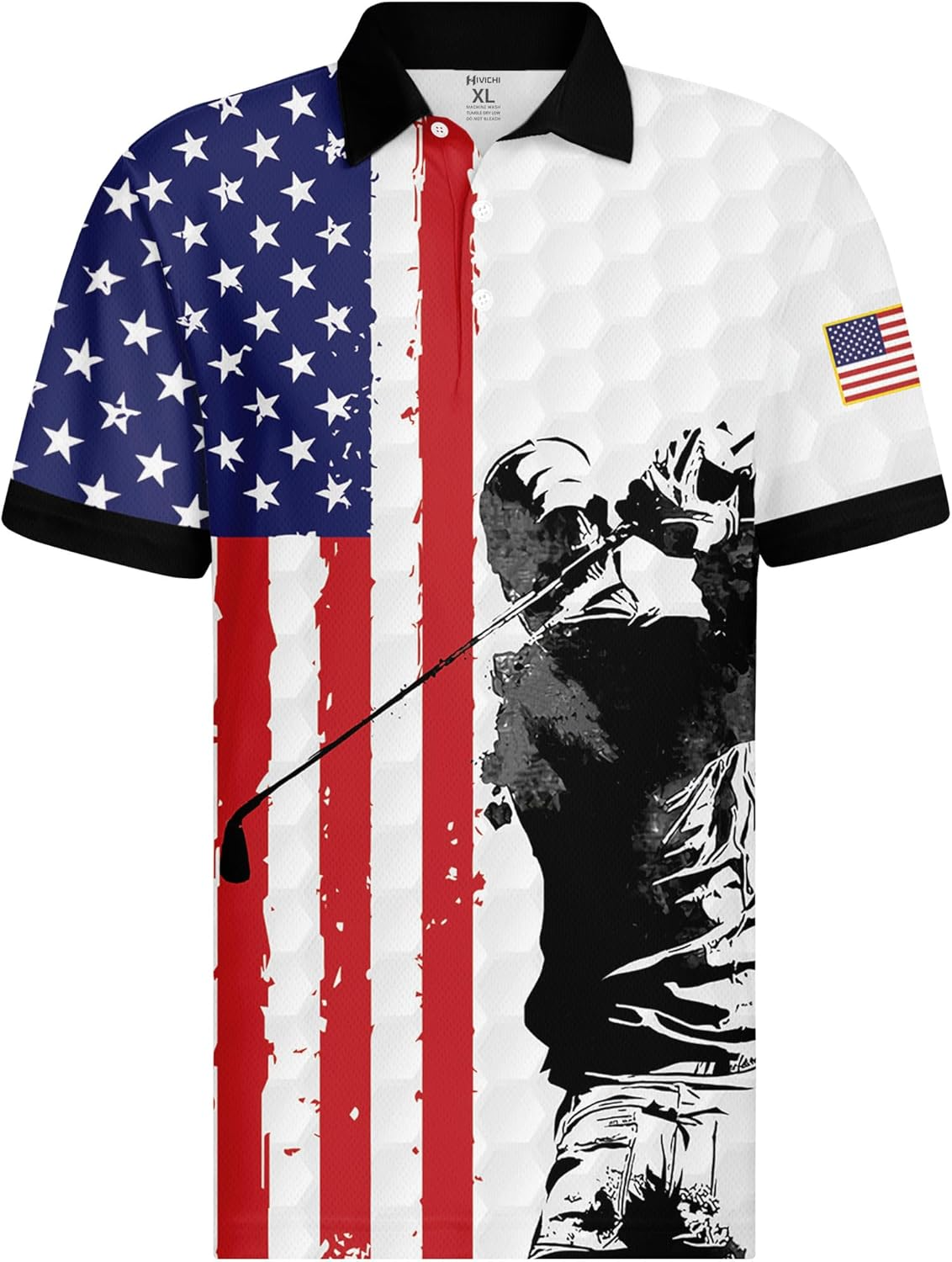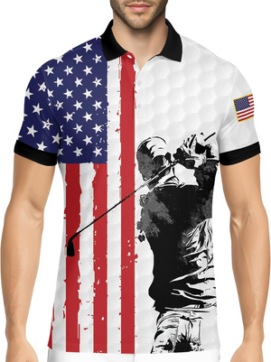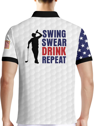 Swing Swear Drink Repeat Patriotic American Flag Golf Polo Shirts, Golf Gift For Men, Golf Shirts For Men