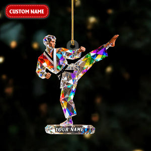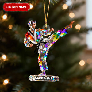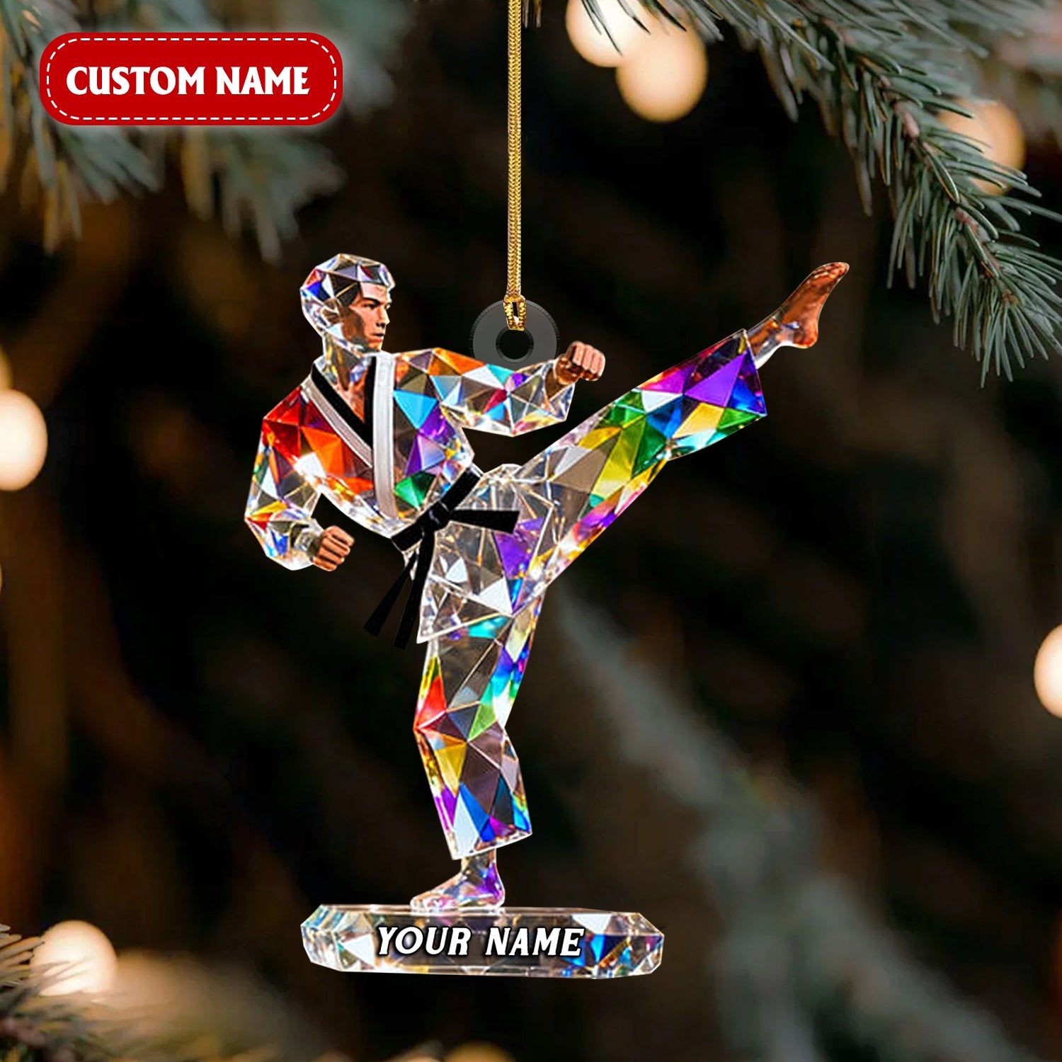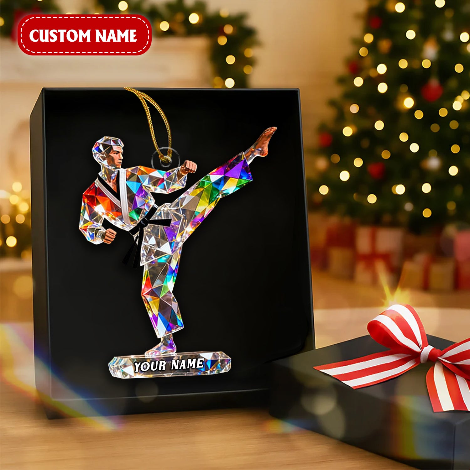 Taekwondo Pose Custom Name Stained Glass Effect Acrylic Ornament, Xmas Decor, Taekwondo Gift