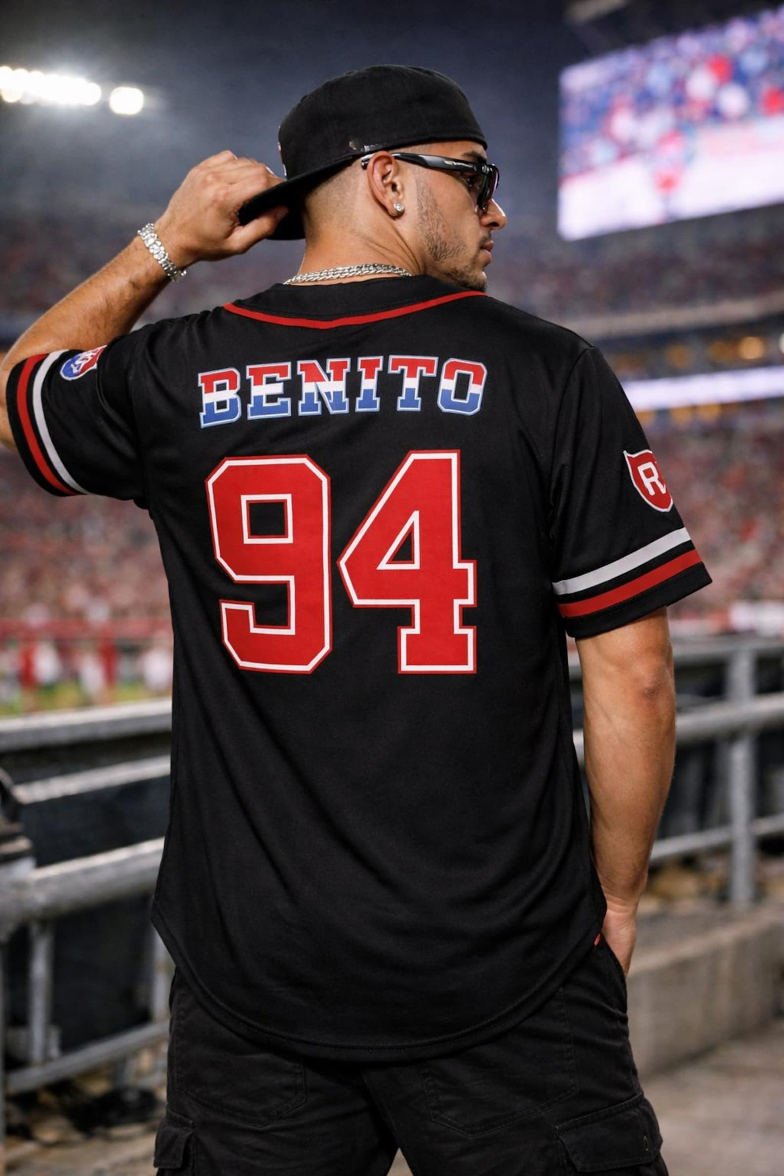 Team Benito 94 Baseball Jersey Black Red Puerto Rico Inspired Shirt Urban Style Jersey