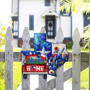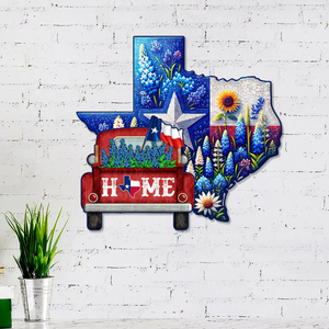 Texas Home Bluebonnet With Car Hanging Metal Sign, Texas Wall Art, Home Wall Decor, Garden Decor