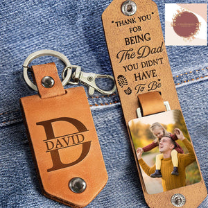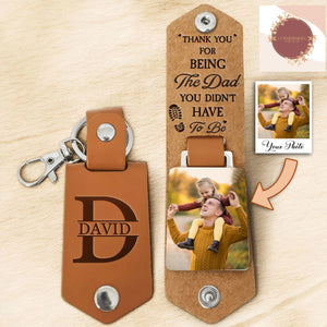 Thank You For Being The Dad You Didn't Have To Be Personalized Photo Leather Keychain, Memorial Keychain, Gift for Dad