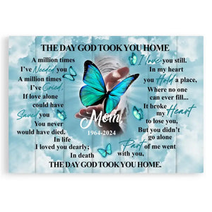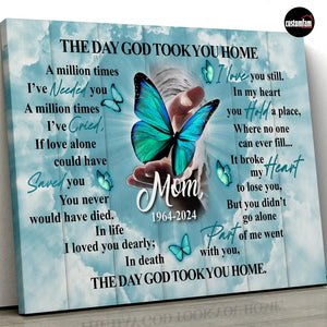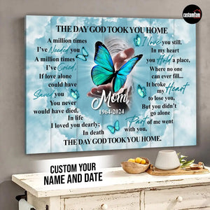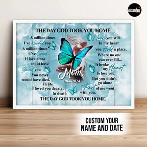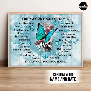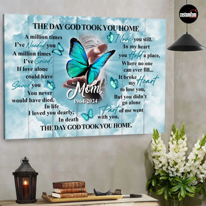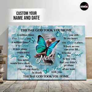 The Day God Took You Home Custom Name Sympathy Canvas Printed, Safe In The Arms Of Jesus Wall Art, Memorial Gift, Loss Of Mother Gift, Bereavement Gift