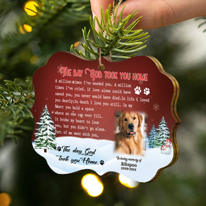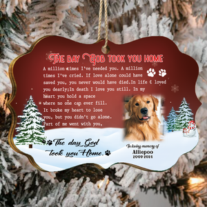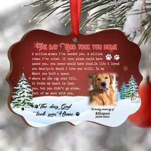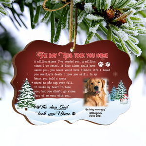 The Day God Took You Home Custom Photo Memorial Christmas Wood Ornament, Sympathy Gift For Loss Of Dog
