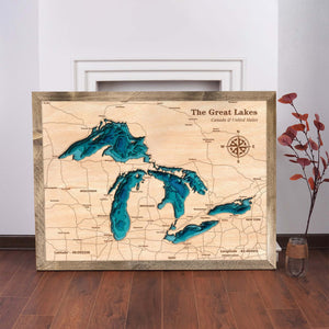 The Great Lakes Personalized Wood Art – Topographic Lake Map Wall Decor