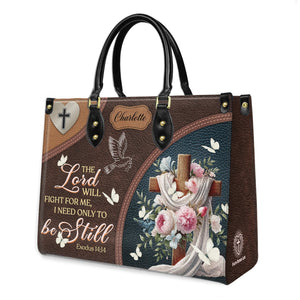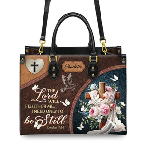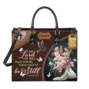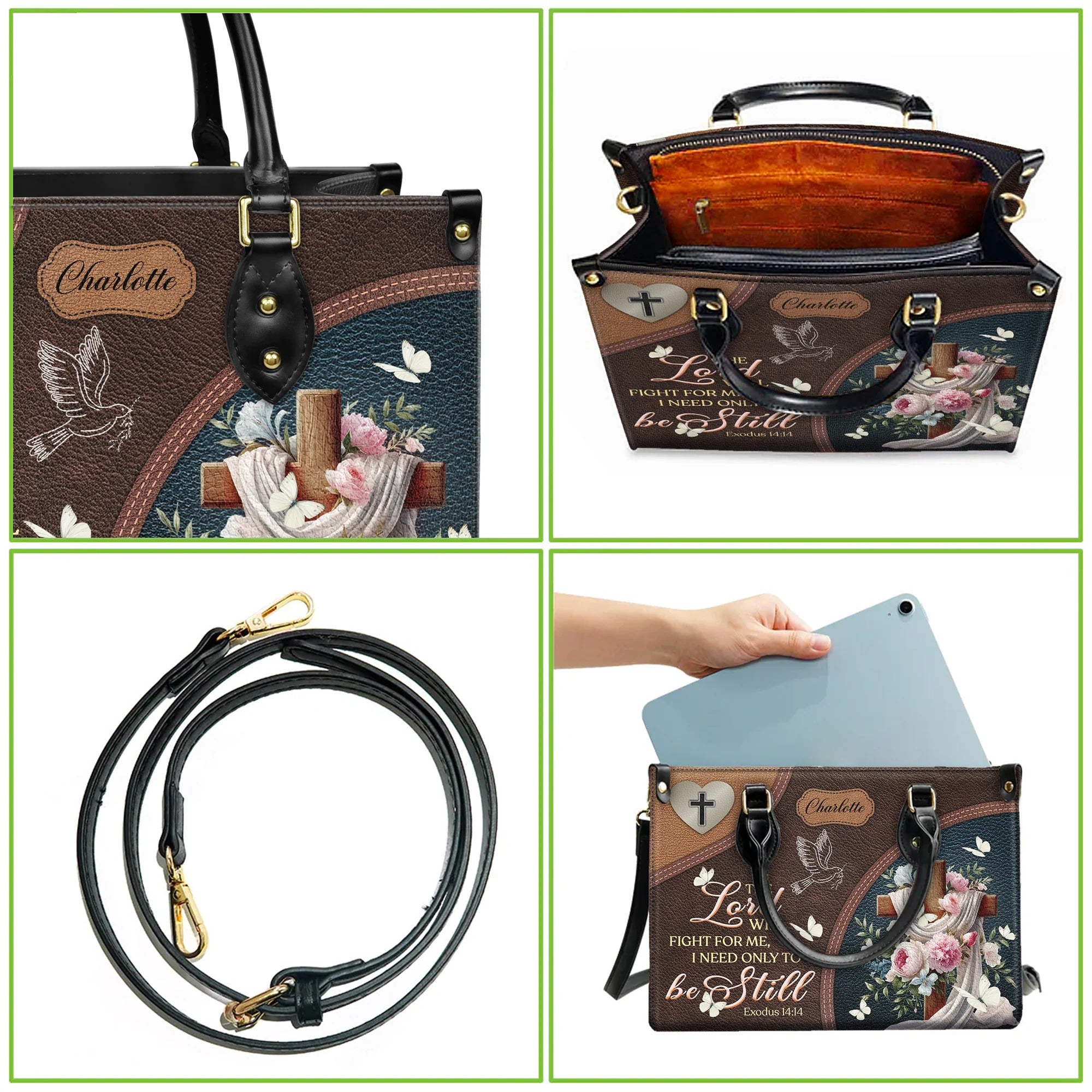 The Lord Will Fight For Me I Need Only Be Still Exodus 14:14 Personalized Faith Leather Handbag