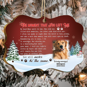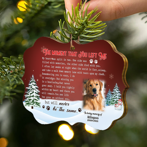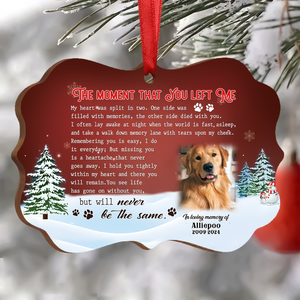 The Moment That You Left Me Custom Photo Memorial Christmas Wood Ornament, Sympathy Gift For Loss Of Dog