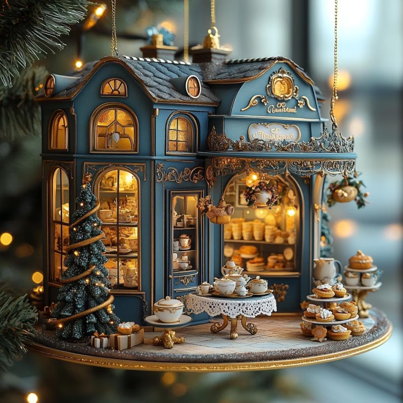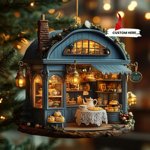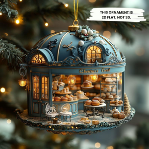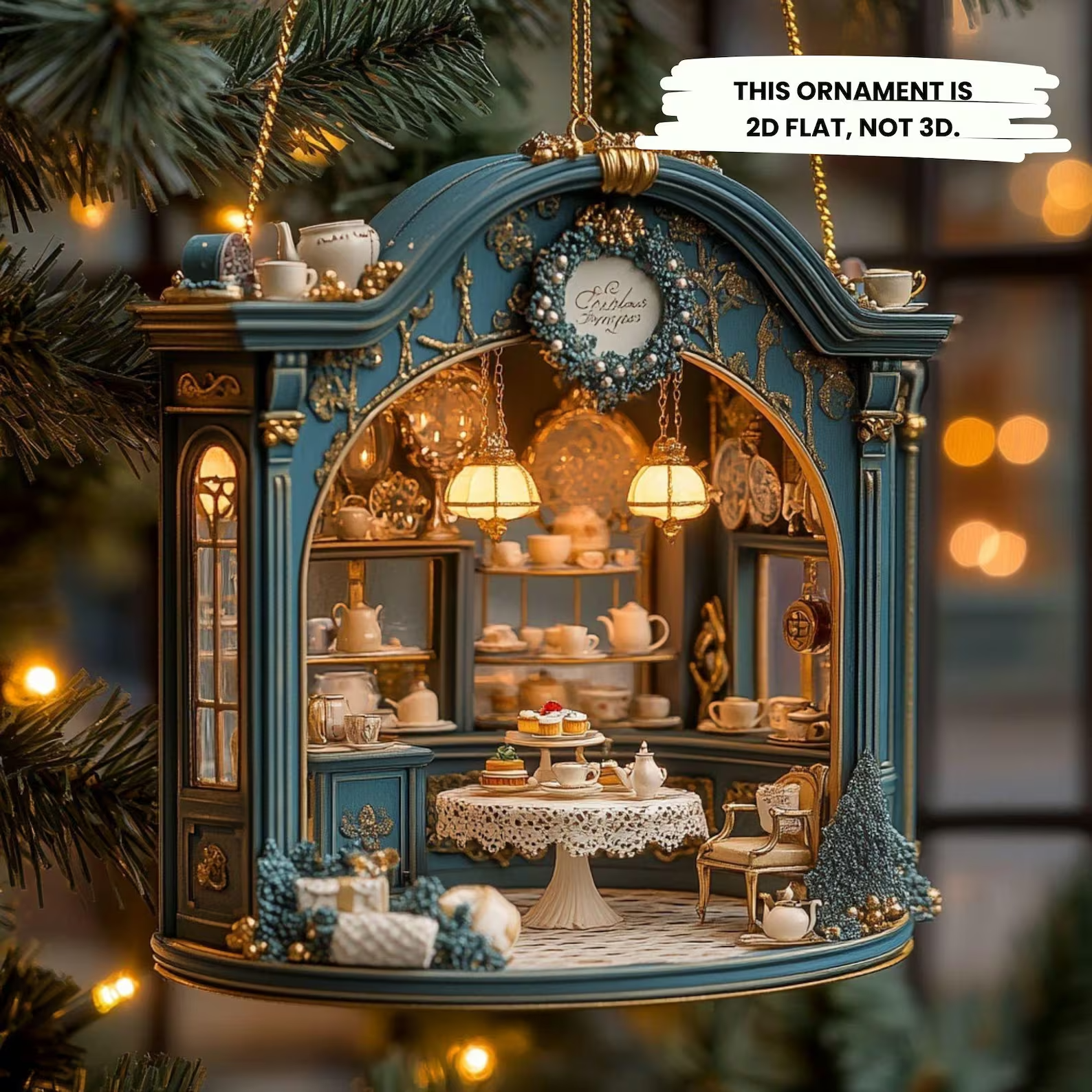 The Tea Shop Acrylic Ornament, Holiday Café Elegant Christmas Decor, Miniature Cafe Cute Christmas Ornaments