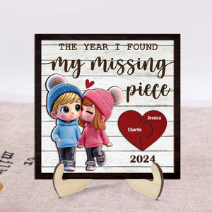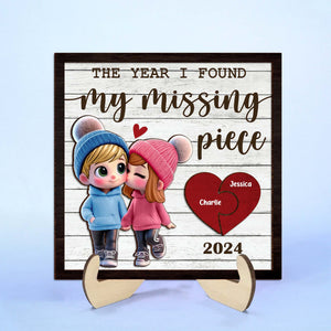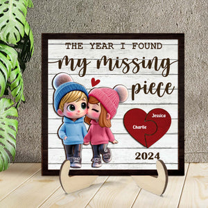 The Year I Found My Missing Piece 2-Layered Custom Wood Sign, Couple Valentines Gift