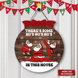 There's Some Ho Ho Ho's In This House Custom Name Funny Twerking Santa Christmas Wood Door Sign