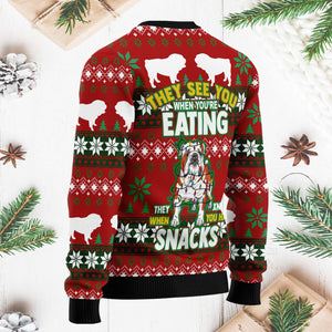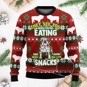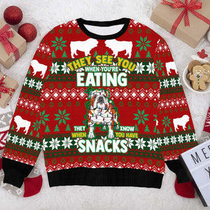 They See You When You're Eating Bulldog Snacks Funny Christmas Ugly Sweater, Christmas Gifts