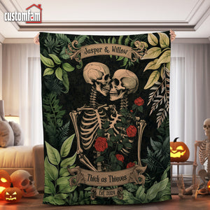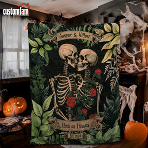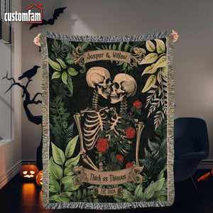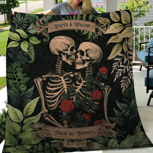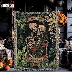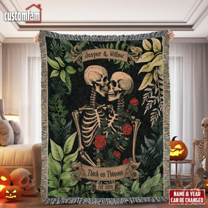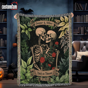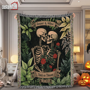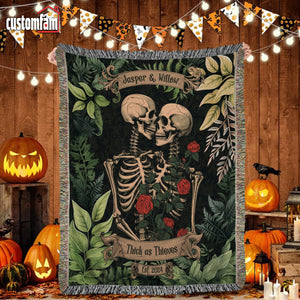 Thick As Thieves Lovers Skull Woven Blanket, Skeleton Blanket, Halloween Room Decor