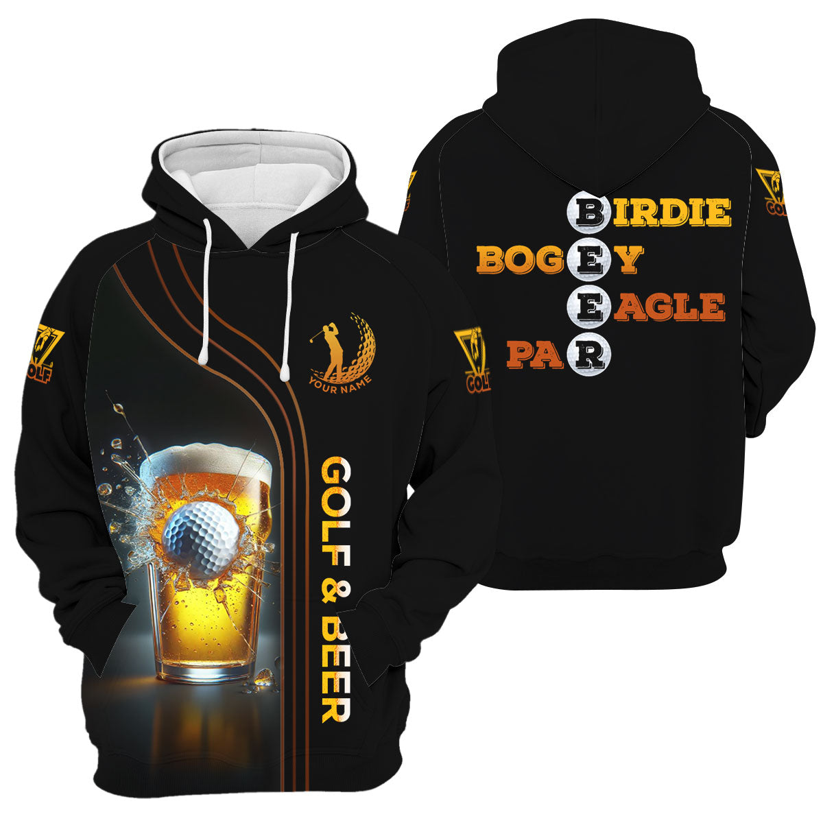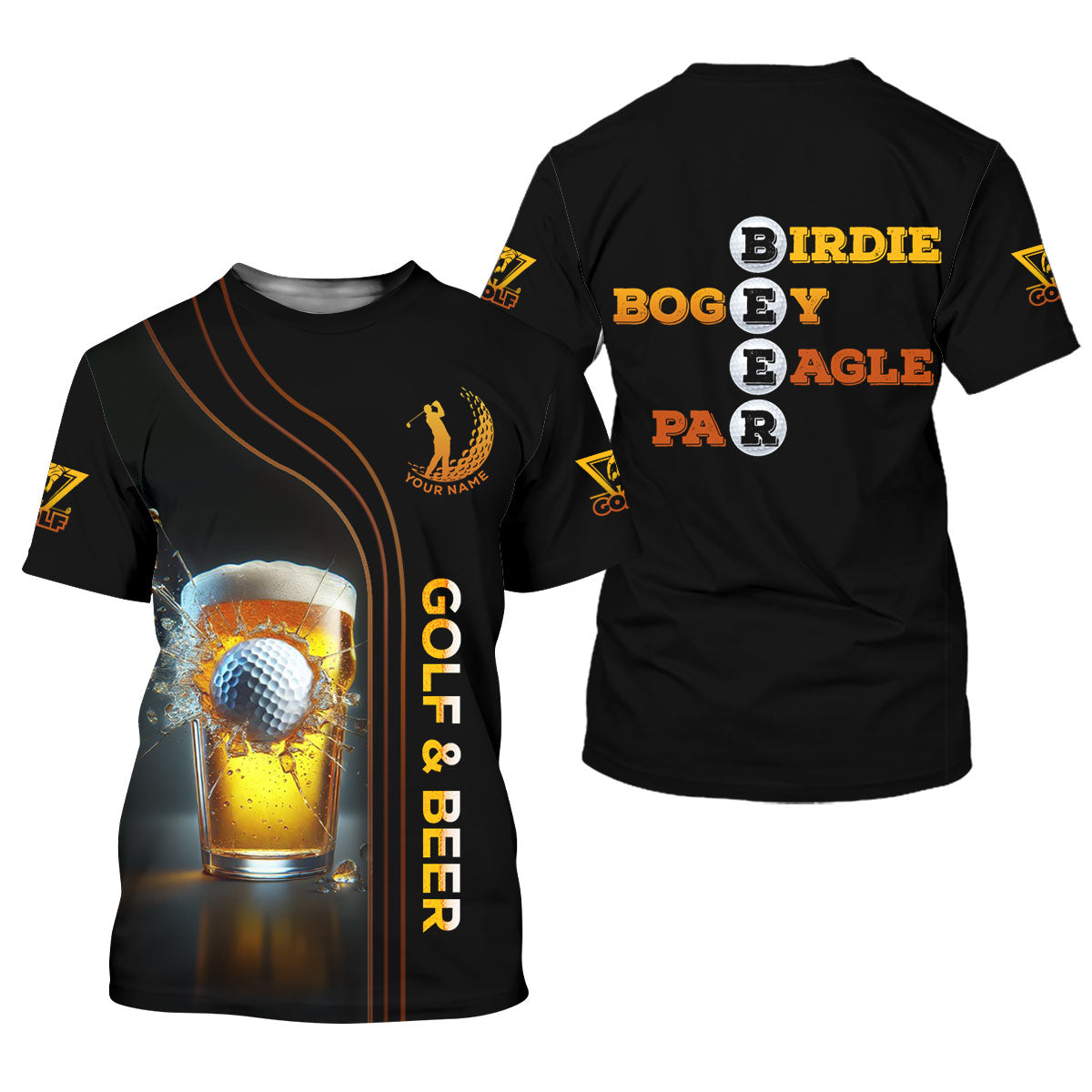 Golf & Beer Custom Men's Golf Polo Shirt, Funny Golf Shirt, Golf Presents For Dad