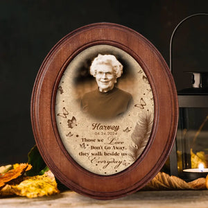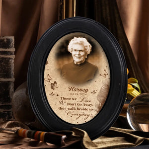 Those We Love Don't Go Away Personalized Photo Oval Picture Frame Pretty, Memorial Wooden Sign, Gifts For Mom