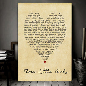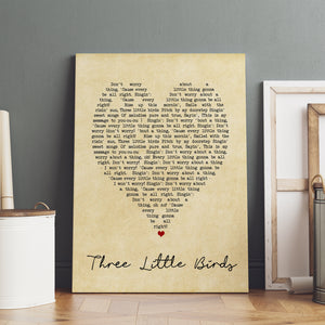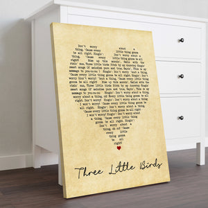 Three Little Birds Bob Marley Vintage Heart Quote Song Lyric Art Print Canvas Print Frames