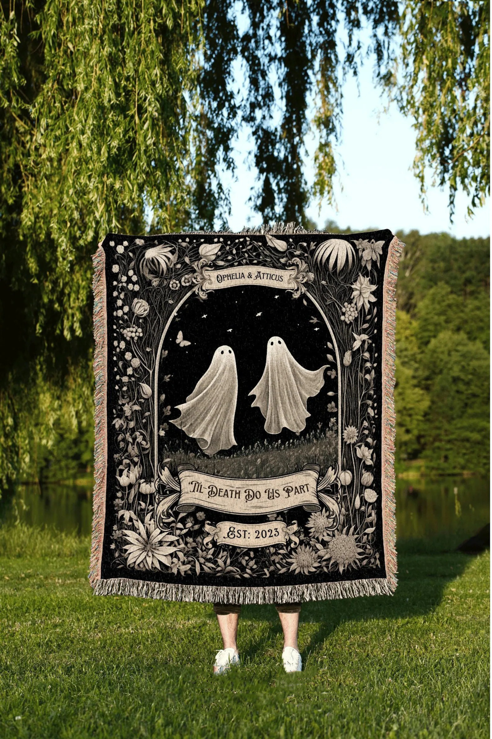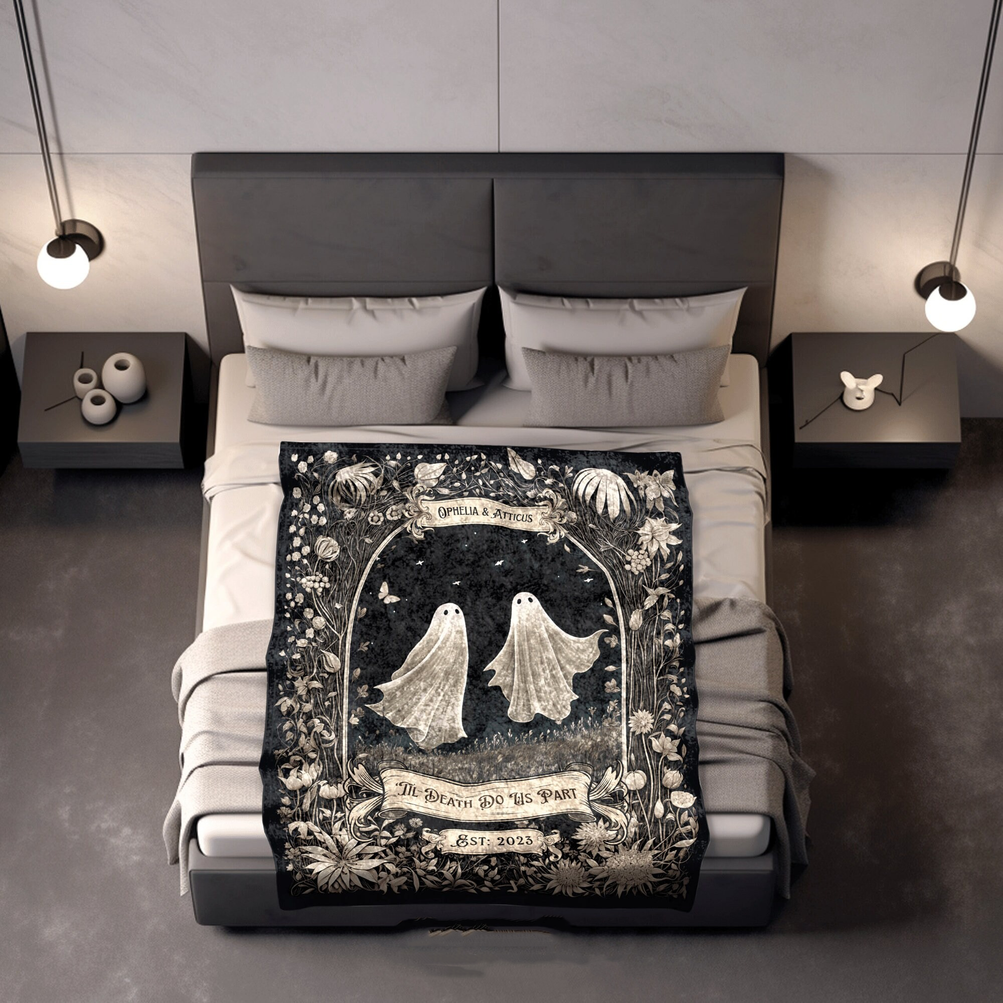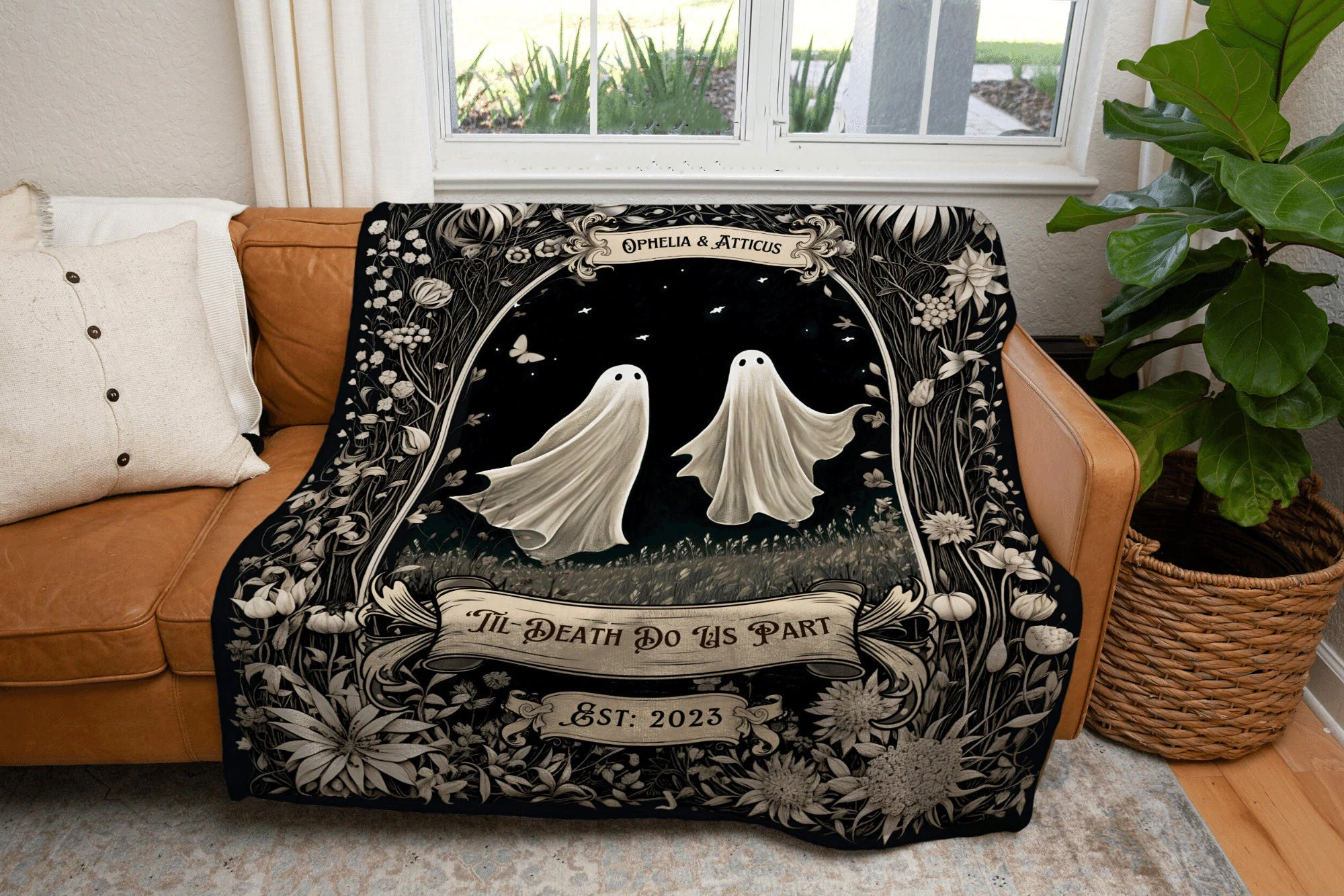 Till Death Do Us Part Blanket, Ghost Couple, Personalized Wedding Blanket, Gift For Wedding Couple, Halloween Gift Idea