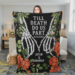 Till Death Do Us Part Custom Couple Skeleton Blanket, Wedding Aniversary Gift