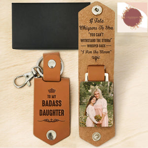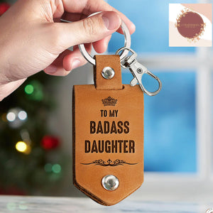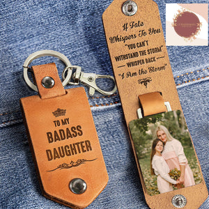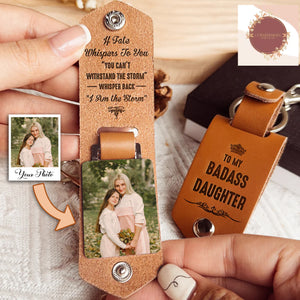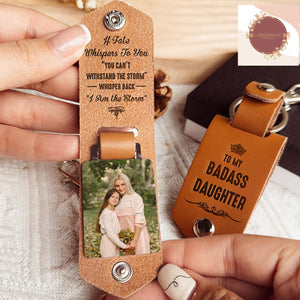 To My Badass Daughter Personalized Photo Leather Keychain, Gift for Daughter