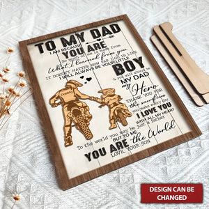 To My Dad Biker Gift 2 Layered Wooden Sign From Son, Gifts For Dad, Father's Day Gifts