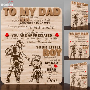 To My Dad Custom Motocross Dad And Kids 2 Layered Wooden Sign, Family Motocross Gift, Gifts For Dad